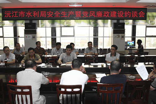 近日,沅江市水利局召開(kāi)安全生產(chǎn)和黨風(fēng)廉政建設(shè)集體約談會(huì),對(duì)局內(nèi)設(shè)機(jī)構(gòu)和所屬基層單位主要負(fù)責(zé)人進(jìn)行了安全生產(chǎn)和黨風(fēng)廉政建設(shè)集體約談,重申安全生產(chǎn)和黨風(fēng)廉政建設(shè)主體責(zé)任和監(jiān)督責(zé)任,明確落實(shí)安全生產(chǎn)和黨風(fēng)廉政建設(shè)規(guī)定精神和嚴(yán)明組織紀(jì)律的具體要求,傳導(dǎo)壓力,落實(shí)責(zé)任。