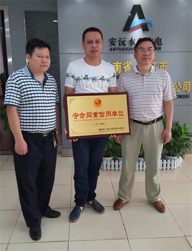 安沅公司被湖南省工商行政管理局評為“守合同重信用單位”